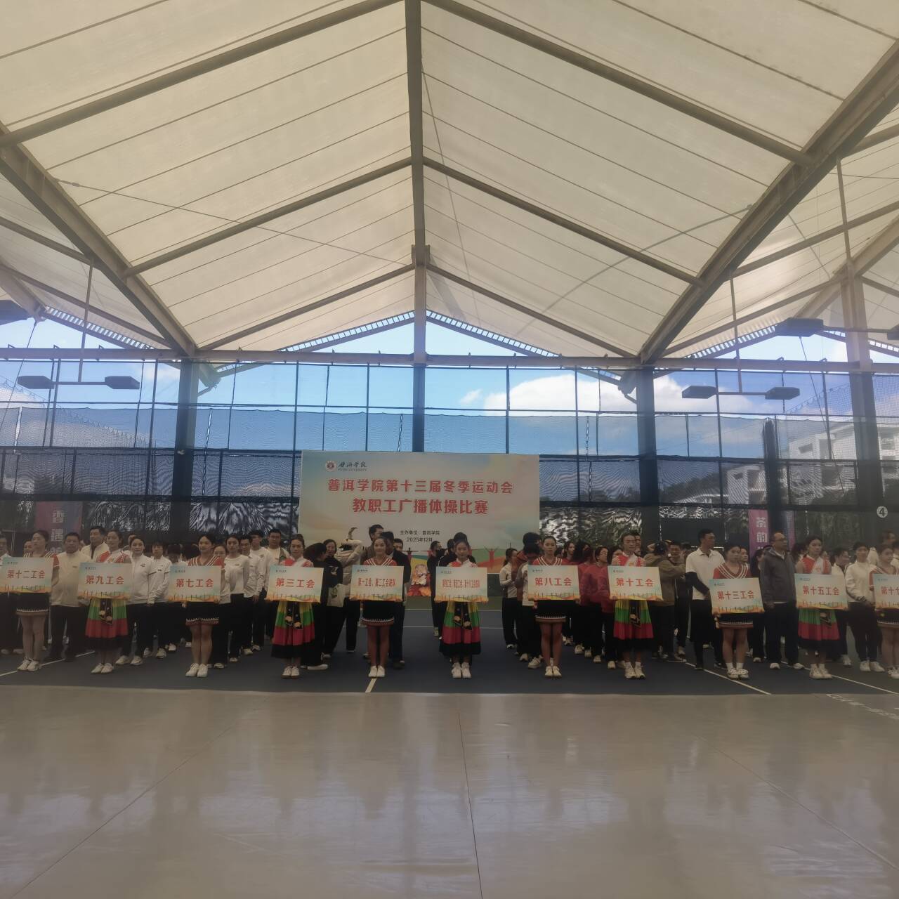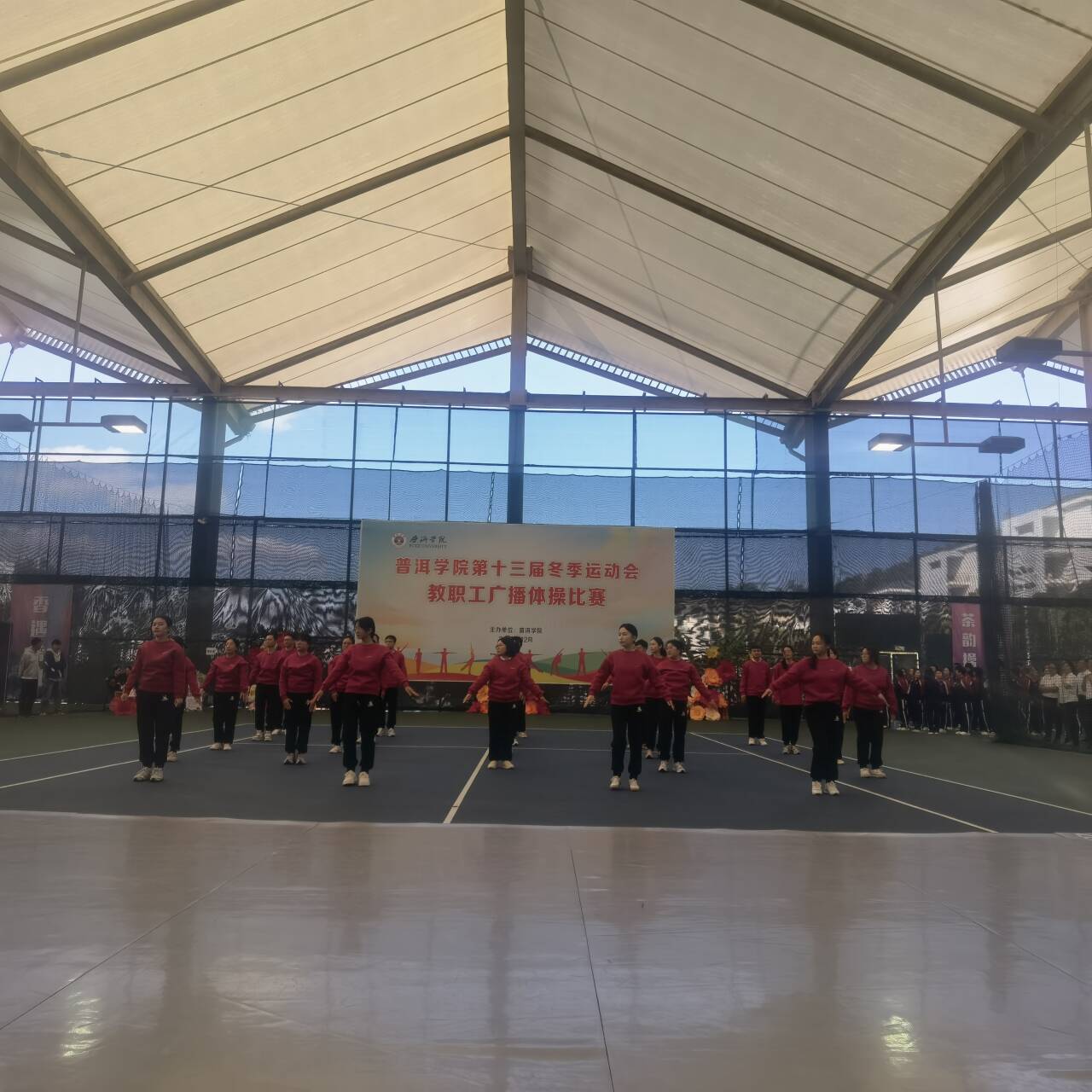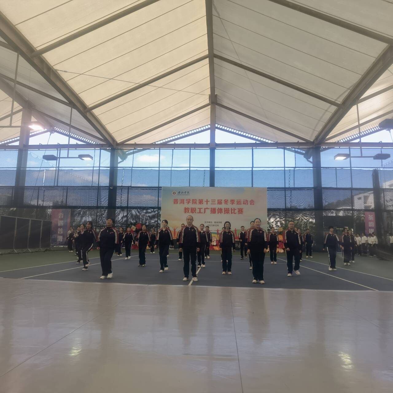 为贯彻落实《普洱市全民健身实施计划(2021—2025年)》, 推进《健康县城建设三年行动方案》“勤锻炼”专项行动,按照《云南省体育局关于开展行业系统工间操赛事活动的通知》要求,普洱学院体育运动委员会、工会委员会共同组织开展普洱学院第十三届冬运会教职工广播体操比赛。
